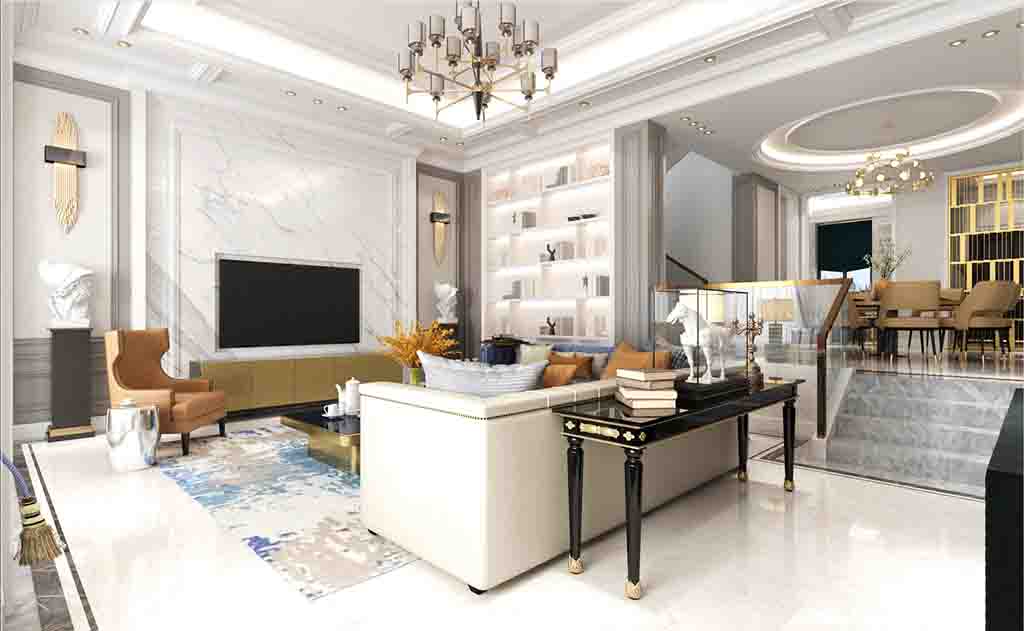 轻奢风格的空间以金属、皮革的中性色调为主,用色彩的纯度传递细腻的质感。造型简洁,线条流畅的家具组合搭配,营造出稳定、协调、温馨的空间感受,满足现代年轻家庭的轻奢需求。没有过于抢眼的造型,亦没有丰富色彩的叠加,而是以最典型的现代简约风格,令所有的色调统一,同时,细节处流露出精致的生活情调。在视觉上舍弃张扬,通过对线条与色块的巧妙应用,营造出轻松的空间氛围,传递“轻奢华、新时尚”的生活理念。