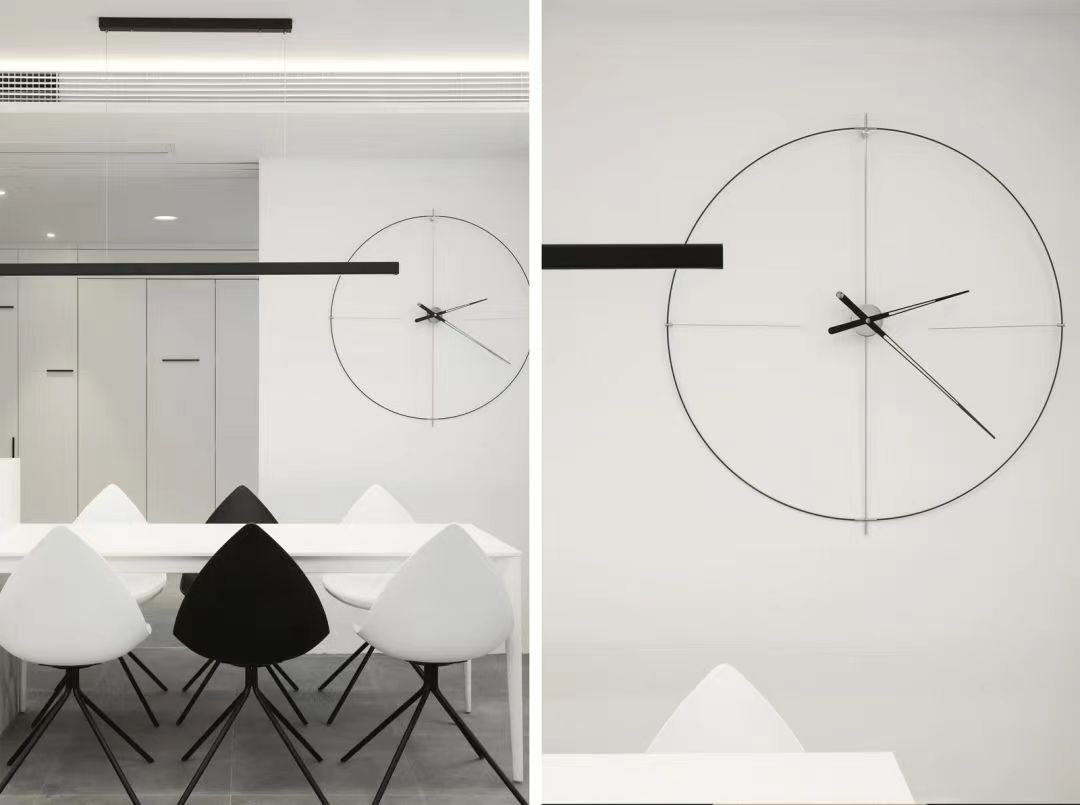 墙面的个性挂钟,造型别致的细脚餐椅,在增加空间趣味性的同时,又用简洁的设计语言,勾勒出空间的层次感。