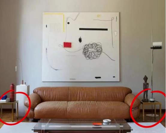 那么下面我们举个例子,沙发尺寸选择上不要填满整个墙面。两边预留边几或边柜或落地灯或绿植的空间,丰富层次感的同时能让空间更有呼吸感。