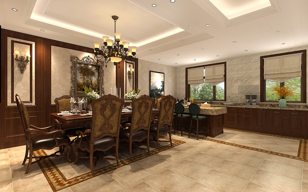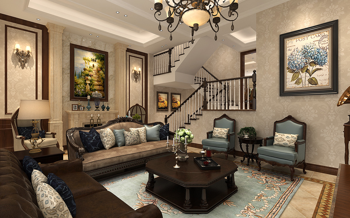 本案由主任设计师设计——美式风格造型较为随意,线条流畅,主要考虑实用性和舒适性,能给人带来大气经典的感觉,却又拥有古典气质和浪漫气息,代表了一种自在、随意不羁的生活方式,没有太多造作的修饰与约束,不经意中也能成就一种休闲式的浪漫。 别墅大宅装修设计/长春靠谱装修公司 就选东易富盛德15643617732
