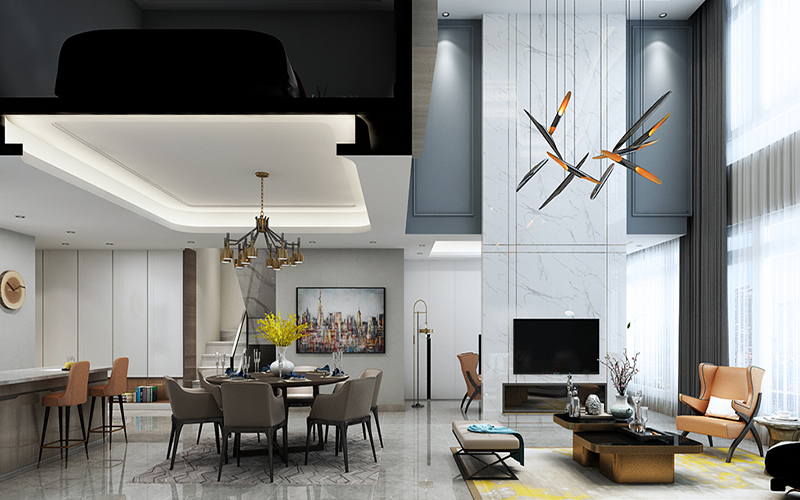 玄关休闲处以表面肌理强烈的石皮,构成一处宁静的空间端景,客厅沙发与电视背景前后以铺一灰色阶的色调搭配,考虑灰阶对象的质感,对比关系中互相衬托互相协调,色彩运用低饱和度具分量感。以及客厅特别设计的橘色沙发等颜色跳跃细致的家具恰到好处,让这个空间变得温馨。厨房白色的橱柜,以及雅士白的柱子,给人一种轻盈感,营造出清澈舒适而雅致的氛围。白灰组合成的空间关系,使空间富有层次感和立体感,空间有了明暗的等级分布。长春装修哪家好,别墅装修,就选东易富盛德15643617732