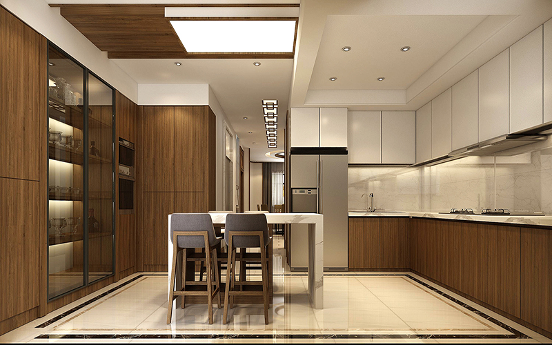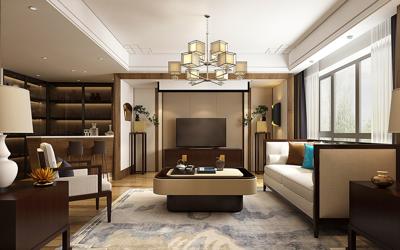 而在电视旁的水吧则是为整个客厅增加了一丝现代气息,是新中式与现代人们的生活的完美融合。