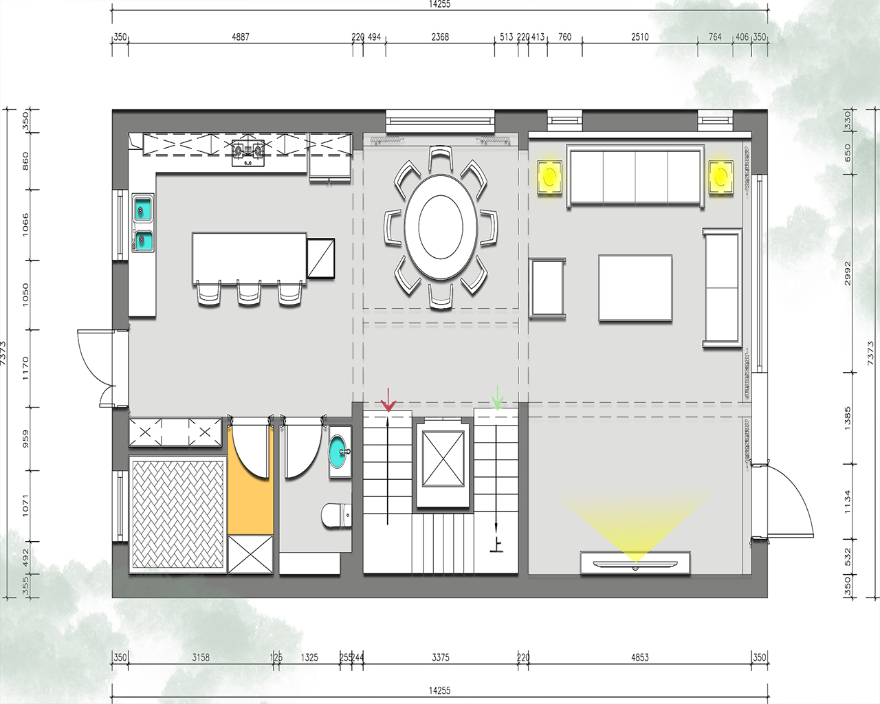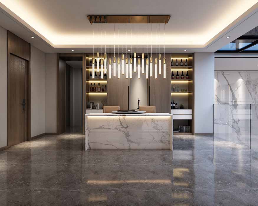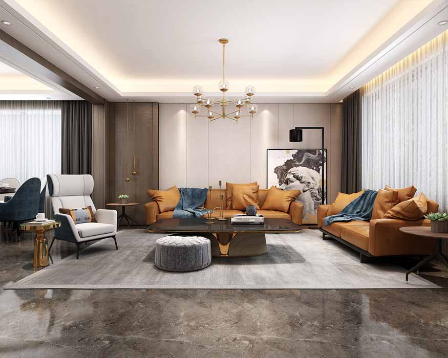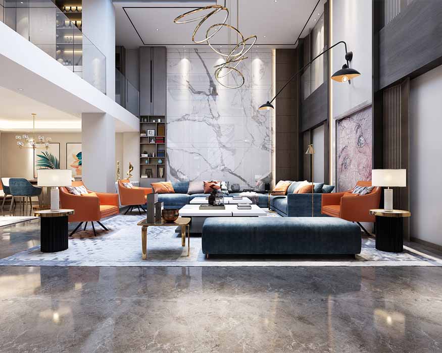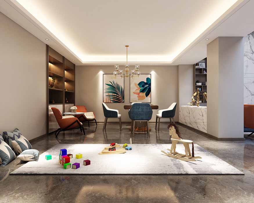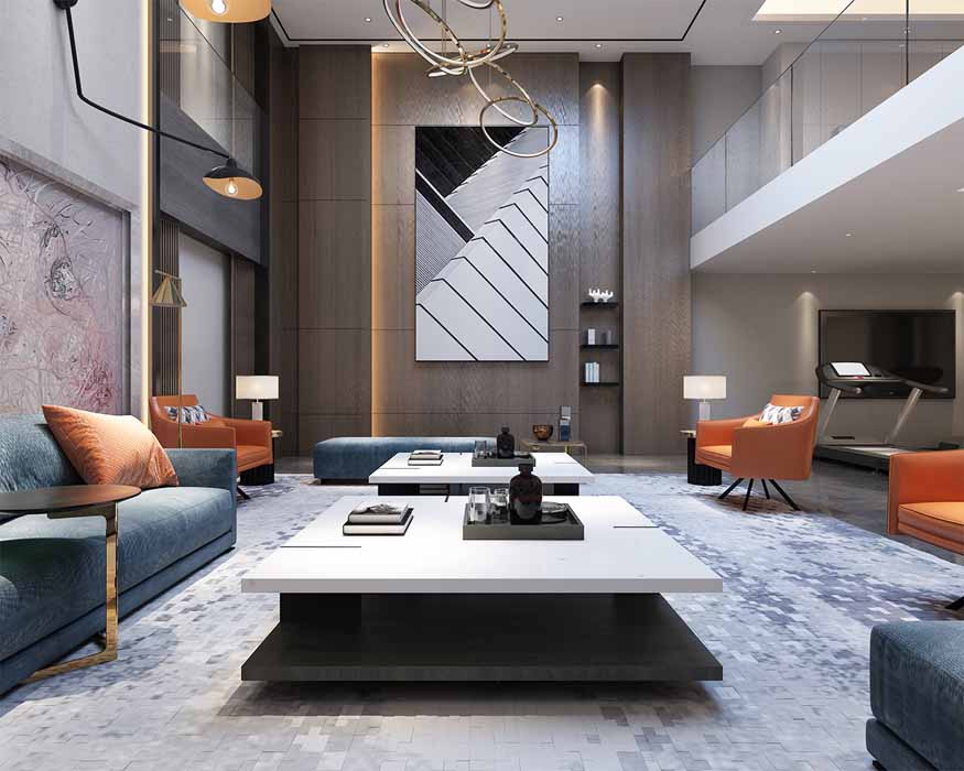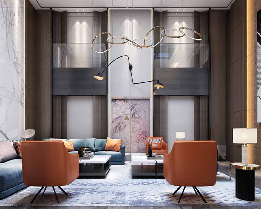 本案采用的是现代简约风格,将整个住宅结构上下分层,共五层,负一层负二层为休闲活动区,功能区,一层二层三层为生活区,动静分区合理利用。 地下作为休闲活动区,突出其结构特性,把原本密闭的空间进行优化,将空间延伸使原本的混凝土高墙的视觉感受改变,用假窗和造型的手法将整个地下室的会客区模拟成在地面之上的感觉,改变使用体验。 生活区的整体感觉以鲜明舒适愉快的方式呈现出来,运用爱马仕橙色,木色纹理点缀以蓝色做搭配创造出明亮愉悦舒适的氛围,使人更容易放松,享受惬意的时光。 设计的初衷就是为生活服务,一切的动线,色彩,功能,灯光,材质的最终落地是为了让这个家的主人在回到生活的空间能真正放松,享受舒适的生活。