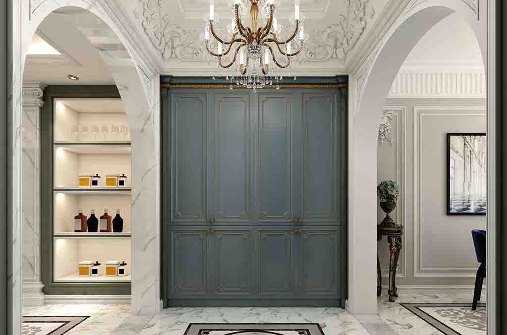 本案是未来一对新婚夫妇作为婚房使用的,其中女主人十分热爱美式风格中所代表的浪漫的元素。所以主要还是采用简约美式的风格外加一点金属的小轻奢风。整体空间的颜色以浅色调为主外加绀青色加以点缀,蓝色所隐喻的是绅士所代表的寓意是忠诚与长远。当曲线轻柔的浅色遇上雕刻温和的蓝优雅清新与温暖矜贵的结合天空便如画卷般展开,浪漫的气息也随之而来,在功能和使用上做到了极大的协调,让整个空间熠熠生辉。每个空间的设计,都是符合既定场景和使用需求,没有过分的渲染和浮夸,这样的设计是真的凸显优雅。 不同于传统的美式空间的高调、奢华、繁复。保留了美式的优雅和轻奢的调性,结合现代家居生活的场景进行设计,这样的设计不会有宫廷式的压抑,反倒是多了轻松的优雅。就算是最简约主义的设计空间也应该是有层次感,只是它被简化了而已,而不是变得单调到乏味。 林清玄说:“浪漫,就是浪费时间慢慢吃饭,浪费时间慢慢喝茶,浪费时间慢慢走,浪费时间慢慢变老。”当婚礼最后一句“Yes , I do.”说出口,脑海里已经勾勒出余生的整幅画卷。婚后的生活可以是柴米油盐酱醋茶,也可浪漫、可优雅。