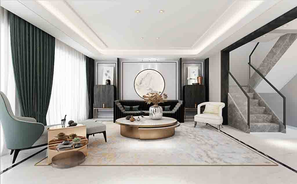 玄关休闲处以表面肌理强烈的石皮,构成一处宁静的空间端景,客厅沙发与电视背景前后以铺一灰色阶的色调搭配,考虑灰阶对象的质感,对比关系中互相衬托互相协调,色彩运用低饱和度具分量感。以及客厅特别设计的橘色沙发等颜色跳跃细致的家具恰到好处,让这个空间变得温馨。厨房白色的橱柜,以及雅士白的柱子,给人一种轻盈感,营造出清澈舒适而雅致的氛围。白灰组合成的空间关系,使空间富有层次感和立体感,空间有了明暗的等级分布。长春装修哪家好,别墅装修,就选东易富盛德15643617732