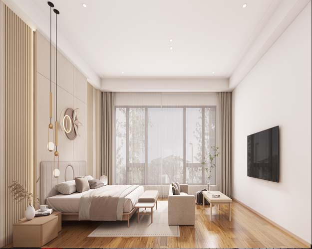 每座城市都有自己的居住范本。从某种意义来说,也诠释着一个城市该有的设计灵魂及时代精神。瑞士建筑大师卒姆托这样形容美:“美的内核,即是浓缩的本质!”纯粹的艺术光感隐隐约约中传达出美好的情境,静然优雅中富有变化,似有若无的韵律给人以无限遐想。主卧套房的设计运用虚实曲折的设计手法,增加空间的灵动性。简洁的空间设计,营造安静、祥和、舒适的生活方式,让人静享美的净化。