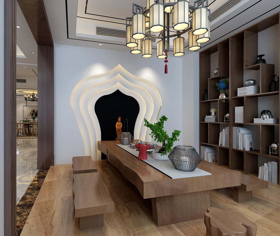 设计说明:此项目业主是一位具有知识涵养的中年男士,比较喜欢有内涵的装修,本方案的设计灵感来源于业主本身,在探讨方案过程中,夫妇二人的恩爱以及相敬如宾的相处方式,让我非常确定用新中式为业主打造一个庄重、优雅、且适合业主本身性格的家。