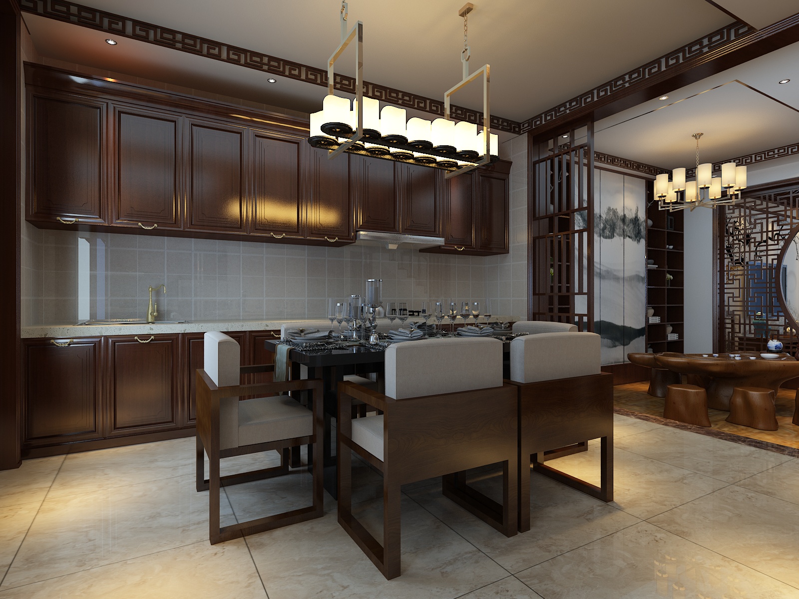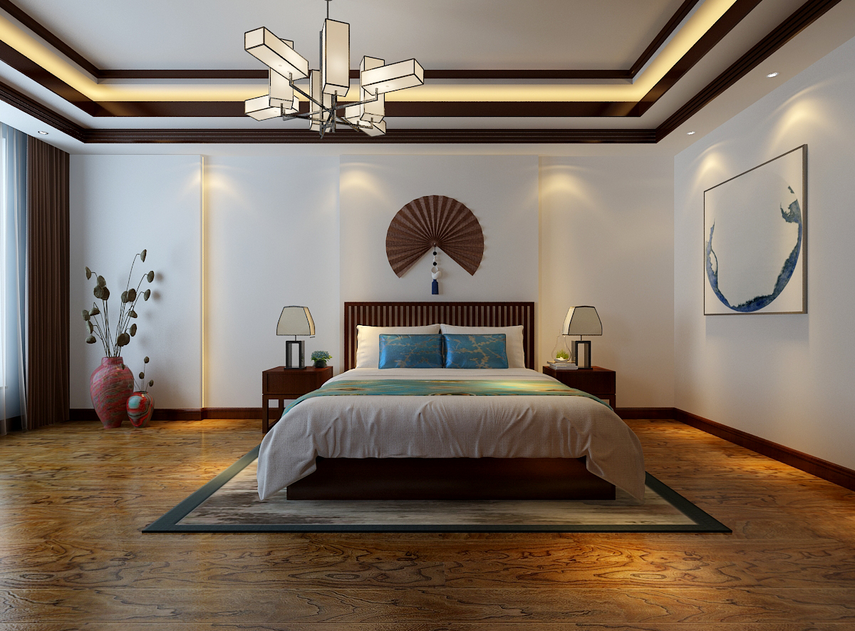 设计说明:业主比较喜欢有中式传统文化韵味的装修风格,所以此设计着重突出了中式的优雅、端庄,天人合一融于自然、崇尚自然的设计手法。设计多处用到曲线,做到阴阳互补、刚柔并济、动静想成、虚实相生。