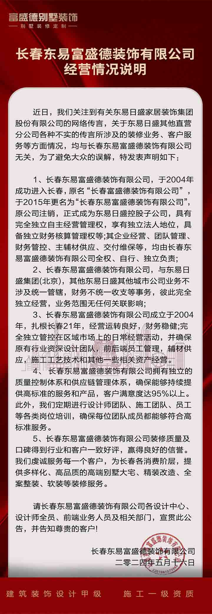长春东易富盛德装饰有限公司一直秉承诚信经营的原则